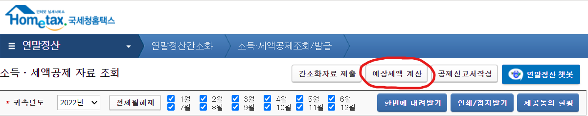 체크 된 부분 다시 확인 한번 해주고 예상세액 계산하기로 이동.