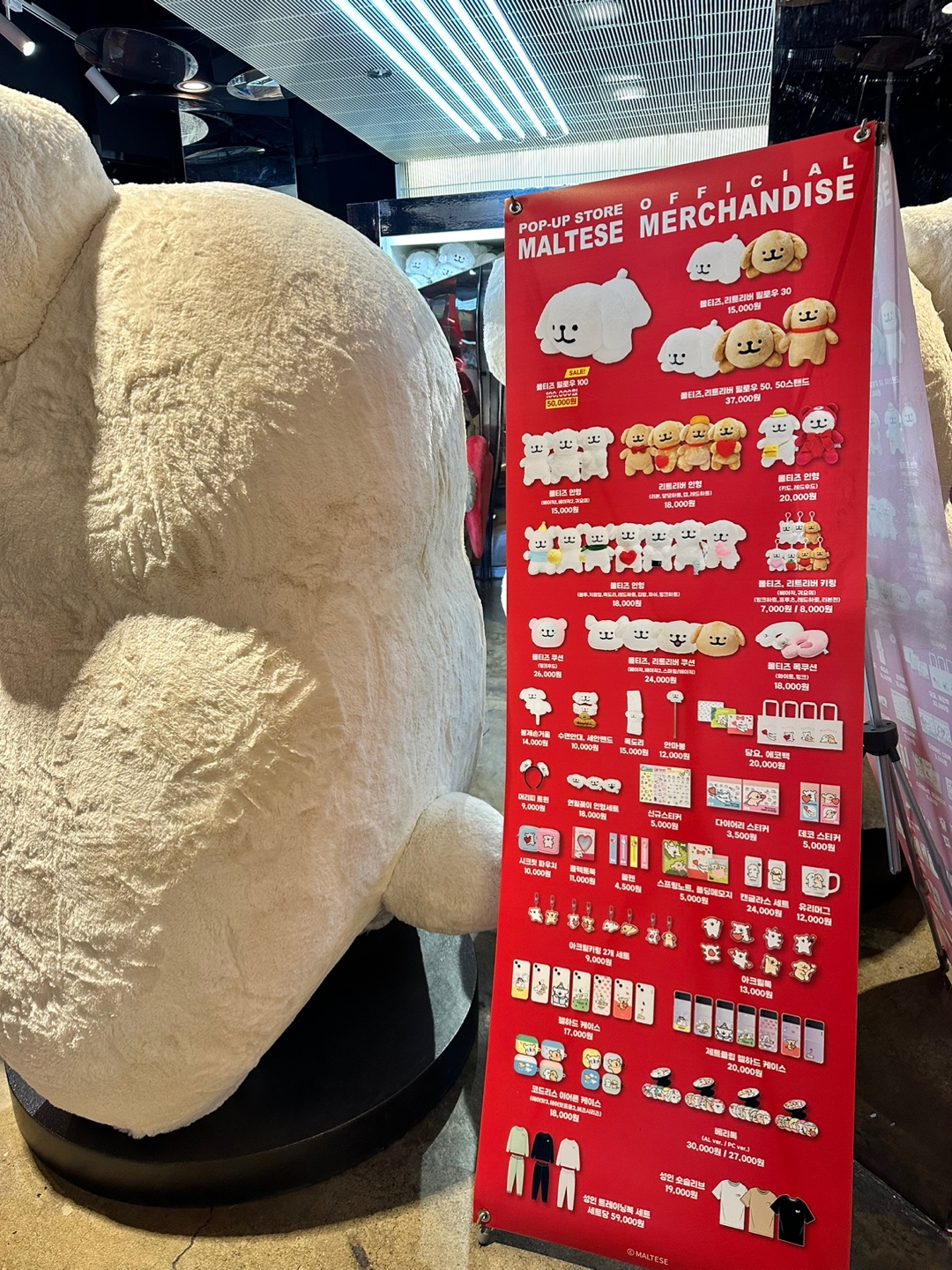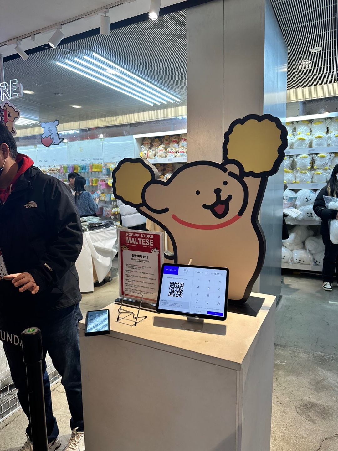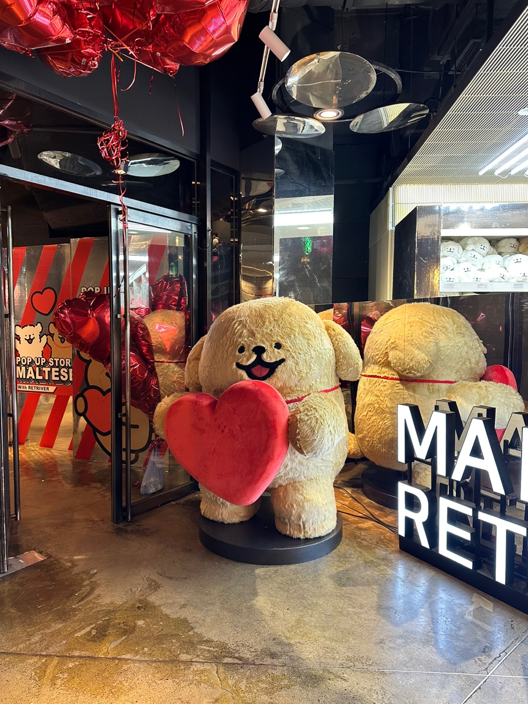 하찮으면서도 귀여운 콘셉트로 2030세대들의 감성을 자극하여 인기를 끌고 있는 문랩 스튜디오의 인기 이모티콘인 몰티즈와 리트리버, 오구 캐릭터 팝업스토어예요.
