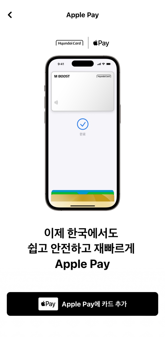아이폰과 현대카드를 쓰고있는 사용자라면 애플페이 사용처에서 실물카드없이 애플페이로 바로 결제할 수 있기 때문에 등록을 안 할 이유가 없겠죠?