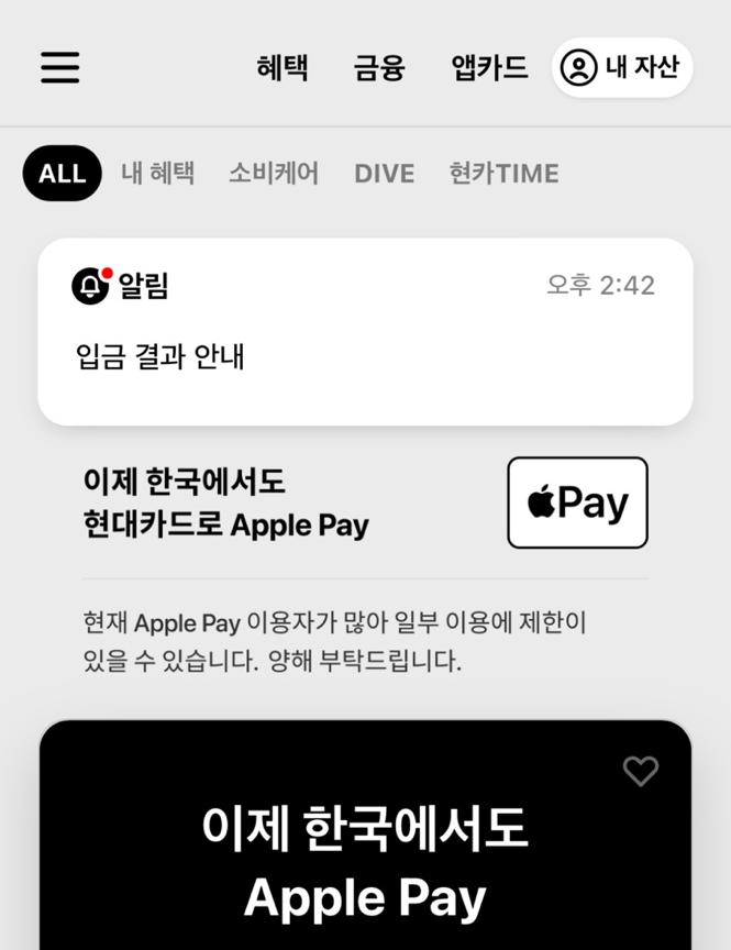 혜택 좋은 현대카드가 많아서 현대카드가 없으신 애플 사용자분들은 이참에 하나 발급받으셔도 괜찮을 것 같네요ㅎ