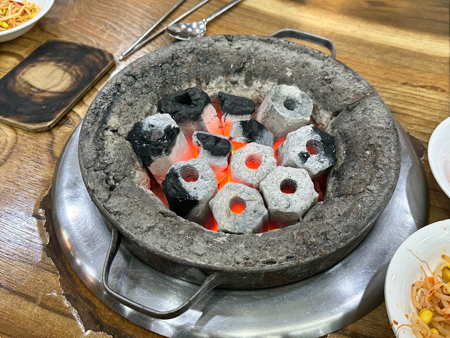 점심시간대라서 그런지 자리에는 이미 불에 달궈진 숯들이 준비되어 있었어요.